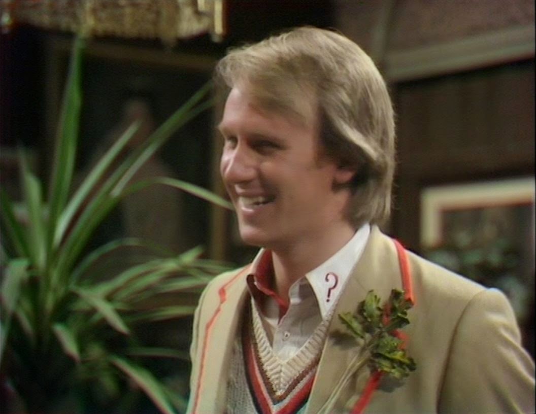 The Doctor gets out of his whites & into a silk dressing gown. Is this his new costume? What would Hartnell say? Nyssa & Ann wear the same outfit to cause a bit of mischief. Tegan thinks it's a great hoot. Easily pleased.