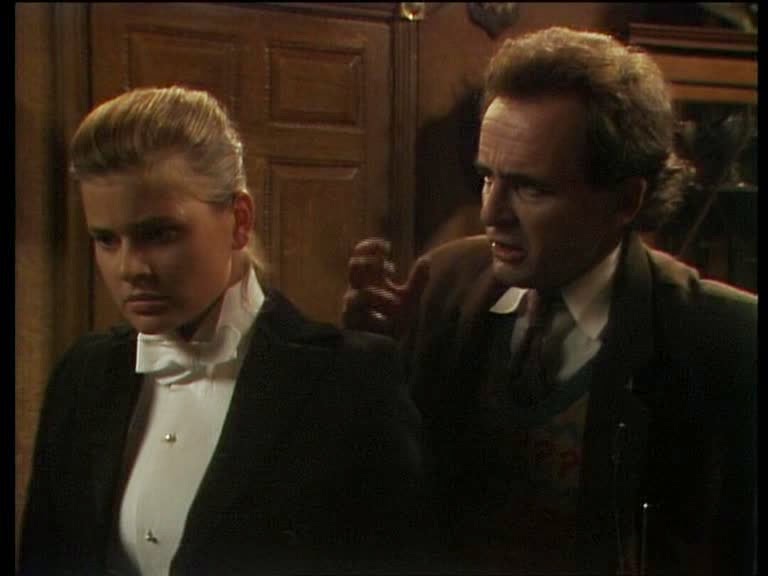 Redfers' tortured screams bring Alice/Ace, now doing a Victor/Victoria, running but Mrs Pritchard pulls her back when the Doctor sees the light.