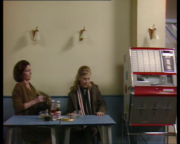 Ace arrives at the cafe and immediately grabs the attention of a young man in a vaguely military seeming leather jacket with her ghetto blaster.