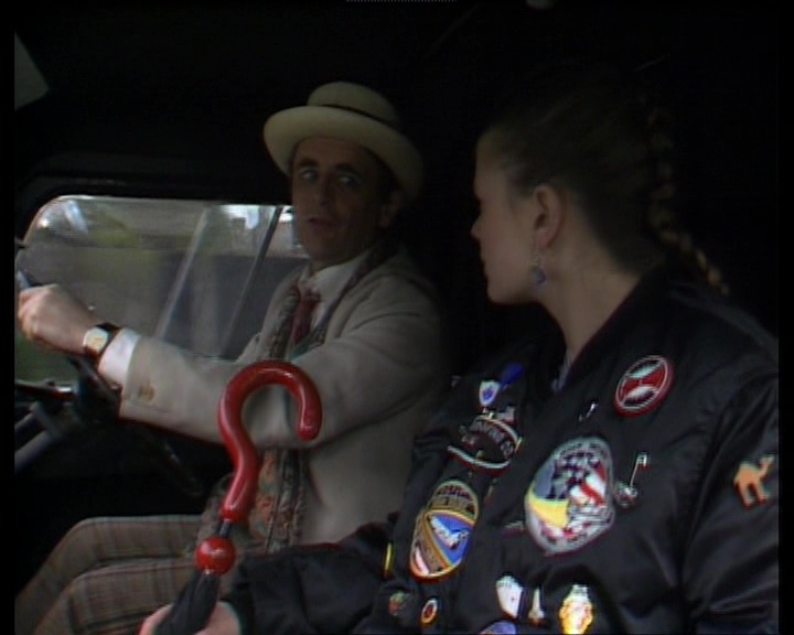 The Doctor and Ace have arrived just around the corner from the school, and are both a little incongruous, though admittedly - on this occasion - perhaps her more than him.
