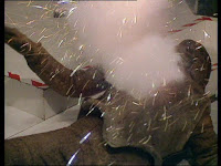 ...one of the groggy Silurians fires a gun with his last breath, fatally wounding Vorshak.